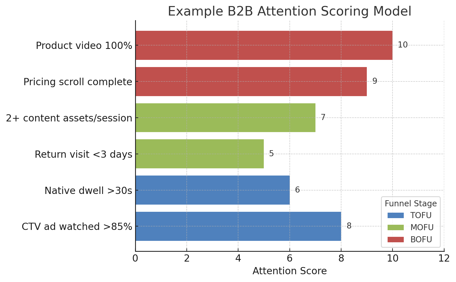 A detailed attention scoring model (by funnel stage and tactic)