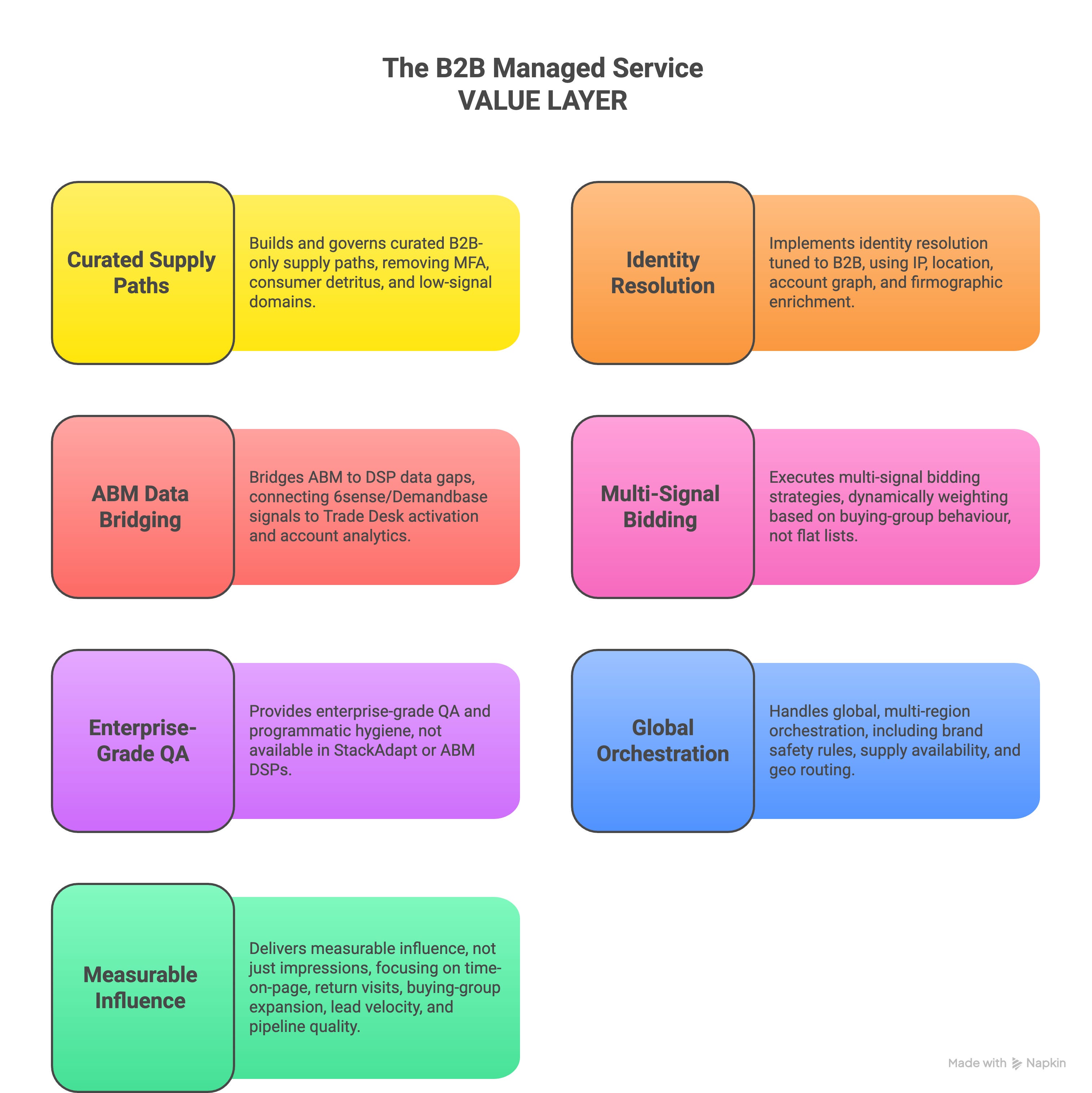This is where expert managed-service B2B programmatic enters — a very different category entirely.