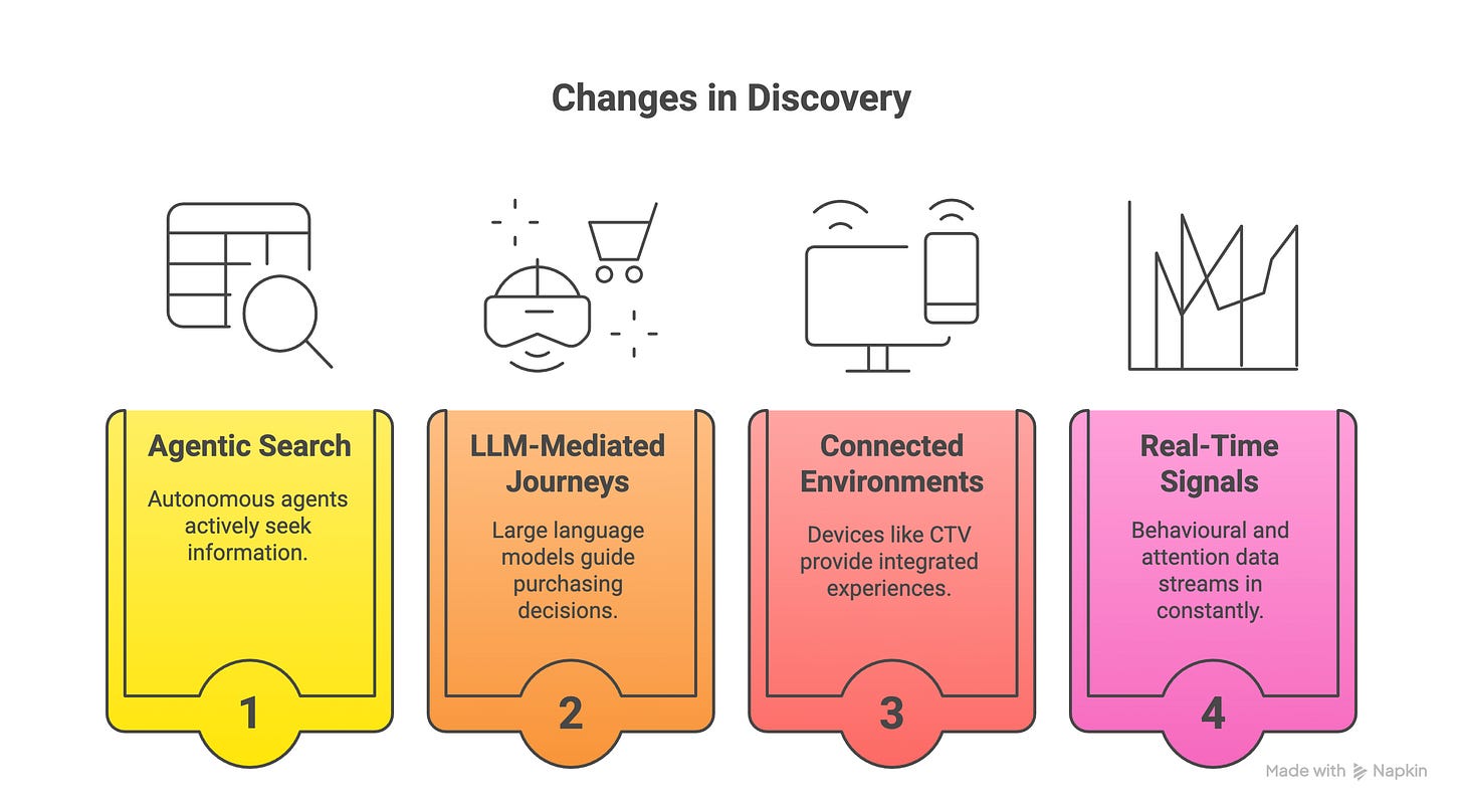 In a world where agentic discovery abstracts buyers away from clicks, environments that generate observable, attributable engagement become disproportionately valuable. Engagement and attention absolutely supersede clicks, and in a connected multi channel (omnichannel) world, we need to level the measurement and attribution playing field.