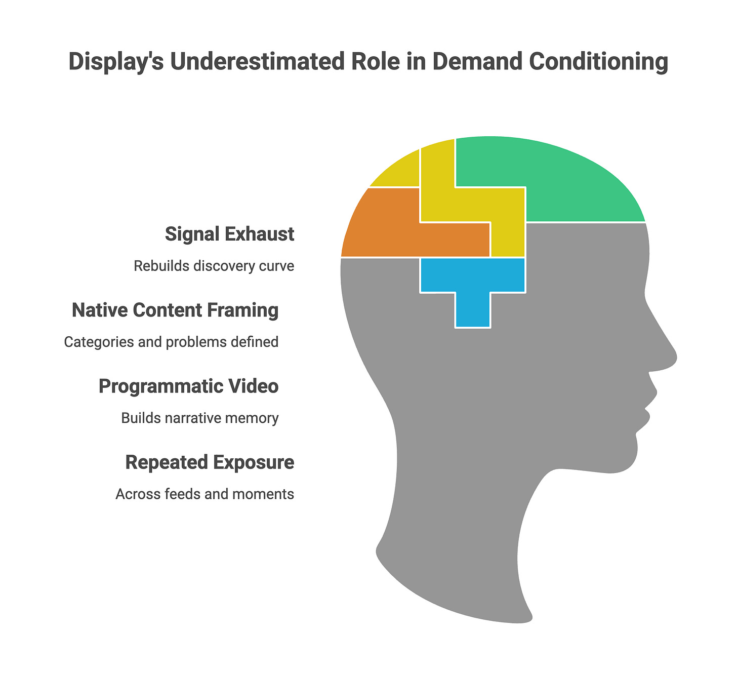 Display isn’t competing with search. It’s pre-conditioning it. This is how display can live up-stream of search, conditioning users towards branded queries faster and shaping the brands that are in the conversation