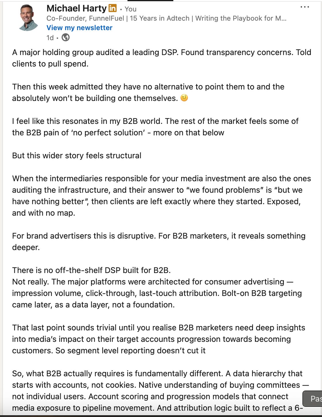 That last line is the one that matters. This is where the activation layer, or DSP, needs to be strong enough to enable the B2B data layers that we need - as I was arguing on LinkedIn this week;