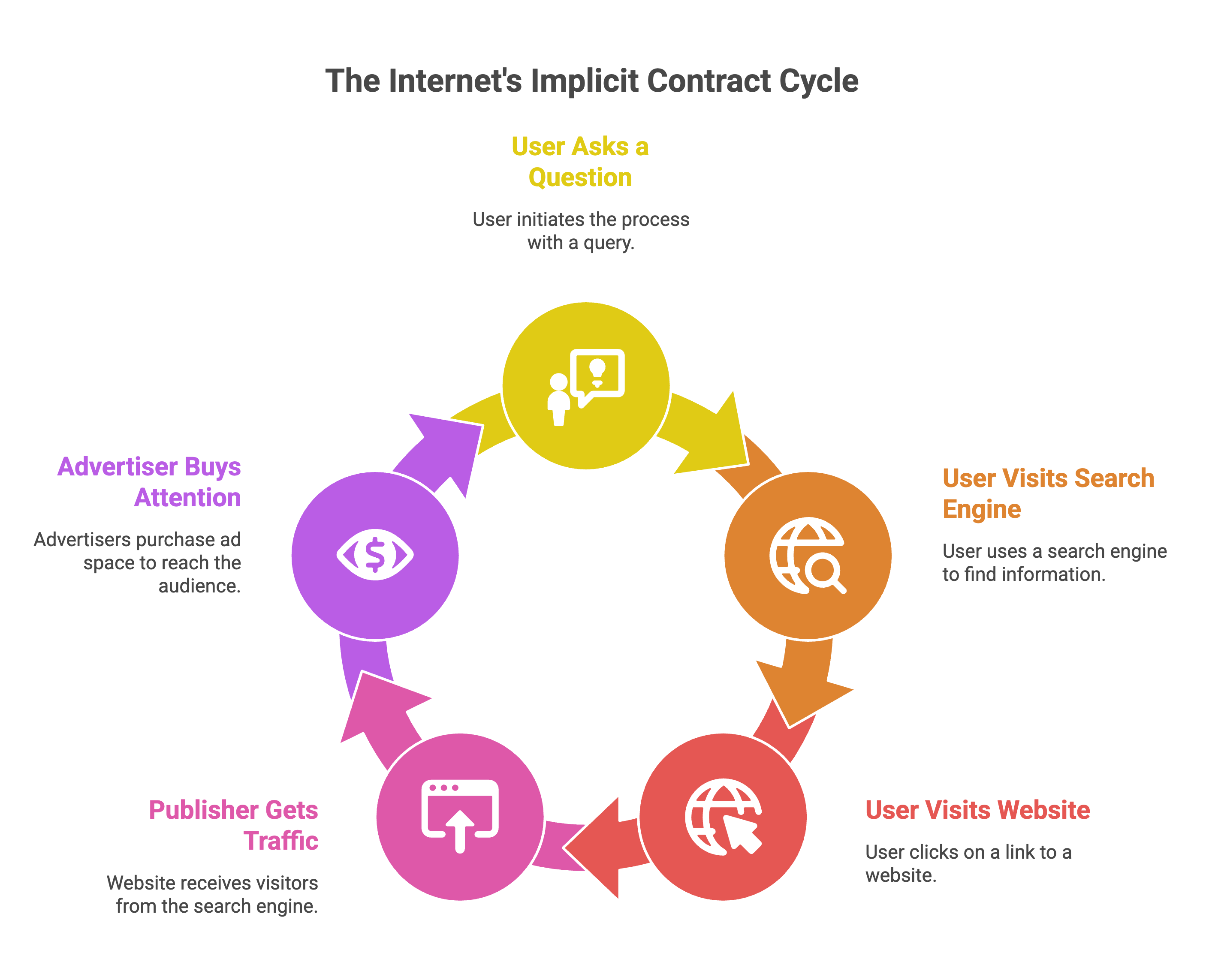 For decades, the implicit contract of the internet was linear: user has a question, user goes to a search engine, user visits a website, publisher gets traffic, advertiser buys access to that attention. The entire programmatic ecosystem — the SSPs, the DSPs, the data platforms, the attribution models — was built around that flow.