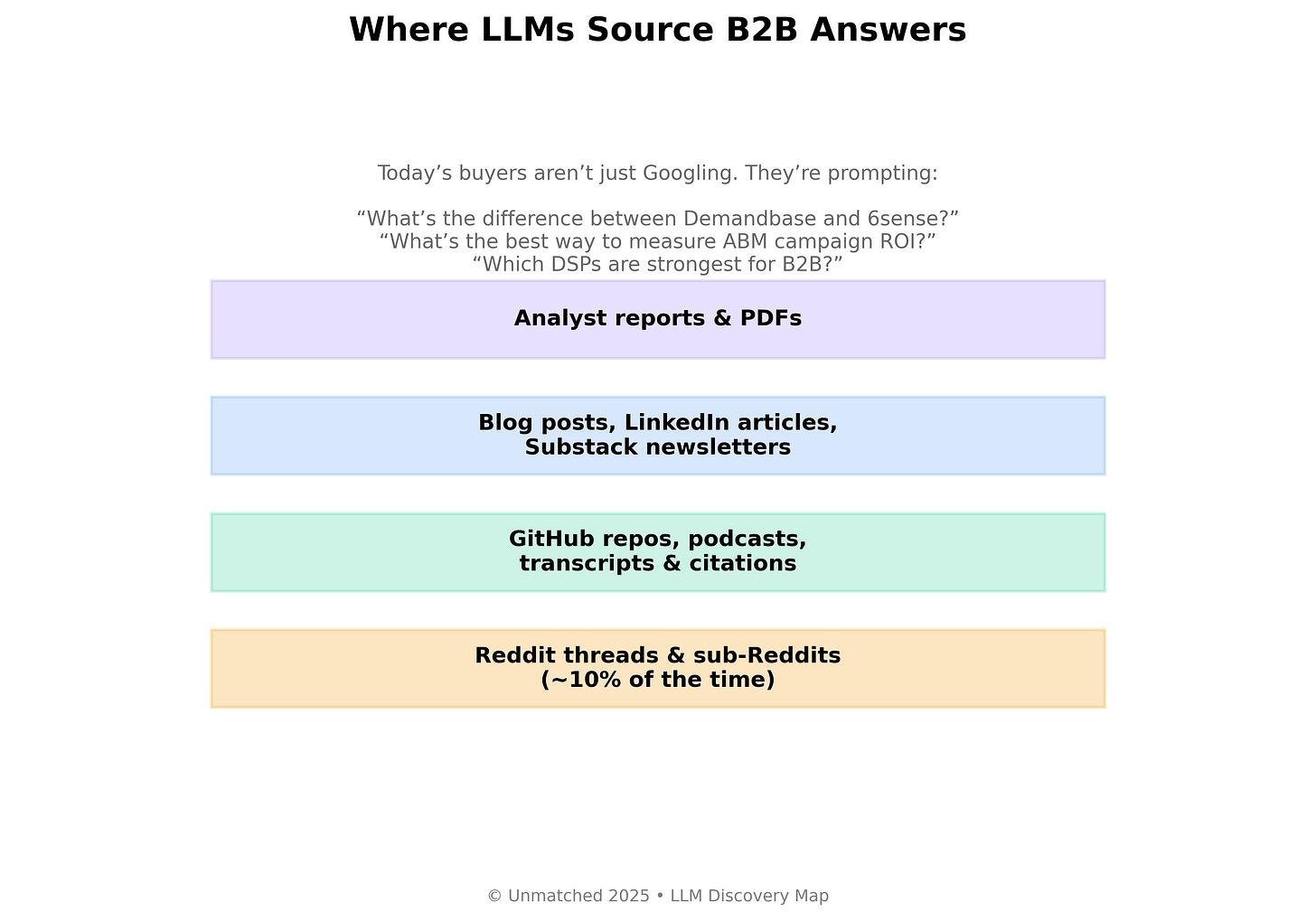 When your buyers ask ChatGPT, Claude, or Perplexity a question like“What’s the best ABM platform?” the answers aren’t being pulled from thin air. They’re stitched together from trusted, repeated, and cited voices across the internet.