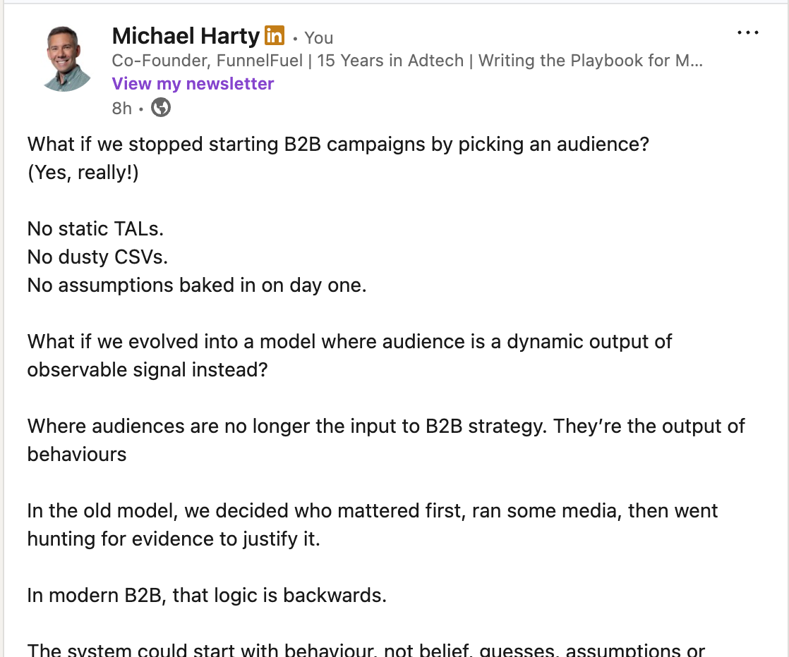 “In modern B2B, audiences aren’t the input, they’re the output of behaviour.”