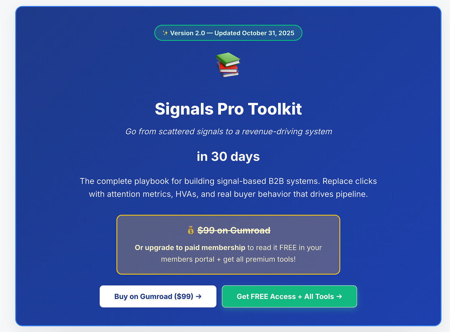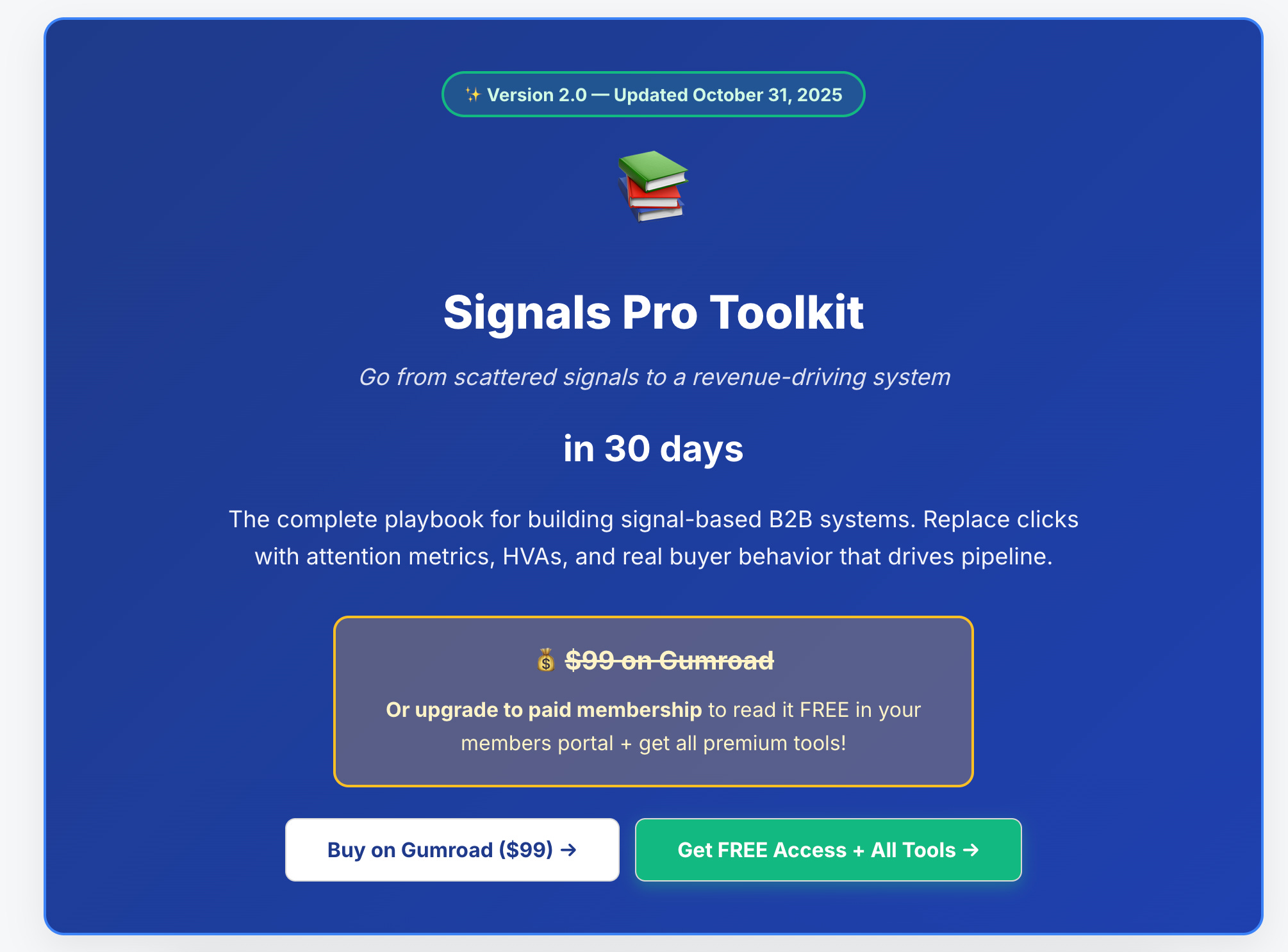 Get the complete B2B Signals eBook (normally $99) â your step-by-step guide to building a signal-based GTM system that replaces vanity metrics with real buying intent.