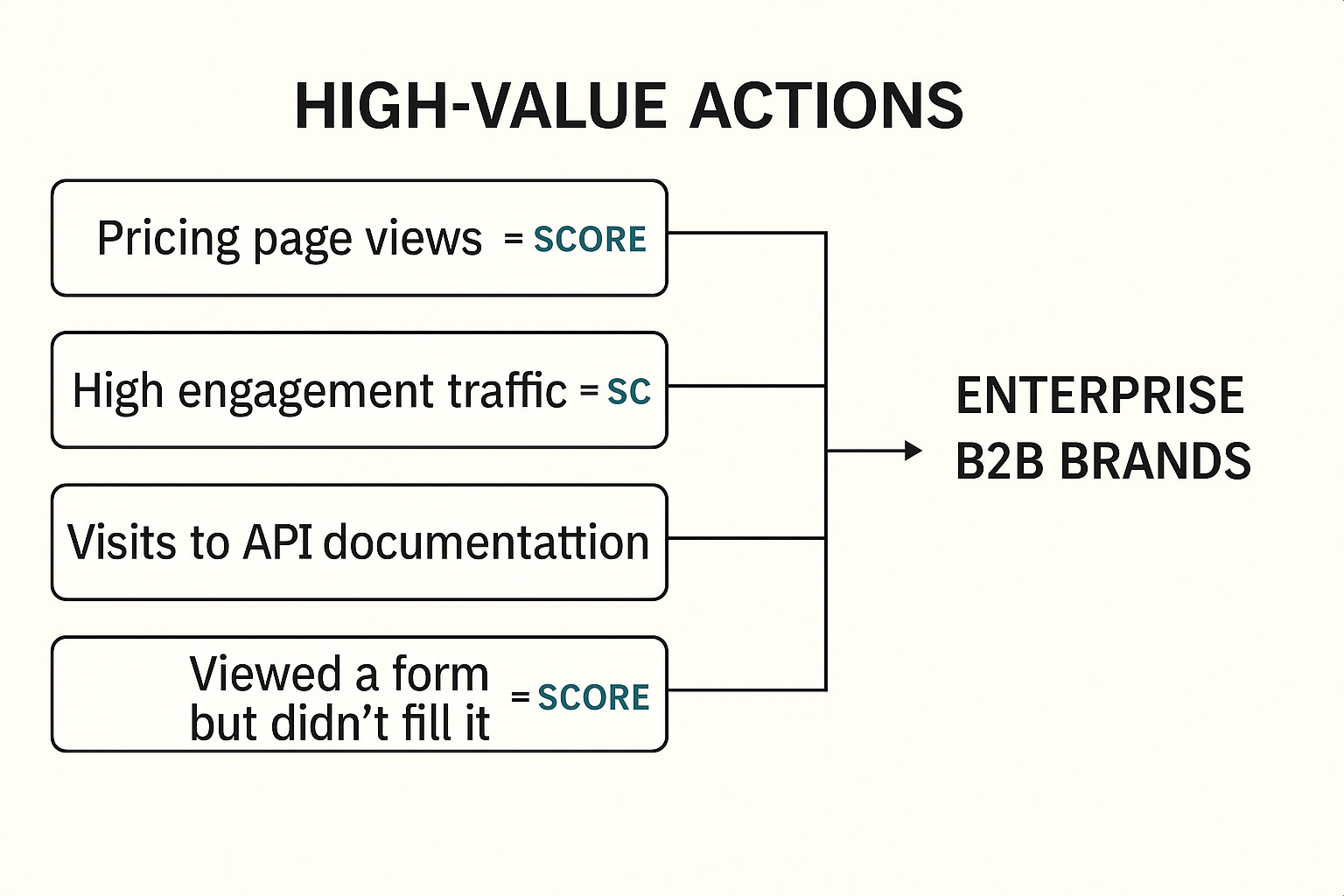 Map out micro-conversions that reflect real buying behaviour: pricing-page views, form starts, documentation reads, repeat visits. We run HUNDREDS of these at FunnelFuel - not for all clients at all times, but as customisable, scoreable placeholders ready to customised to each client - this is the foundation of making programmatic work